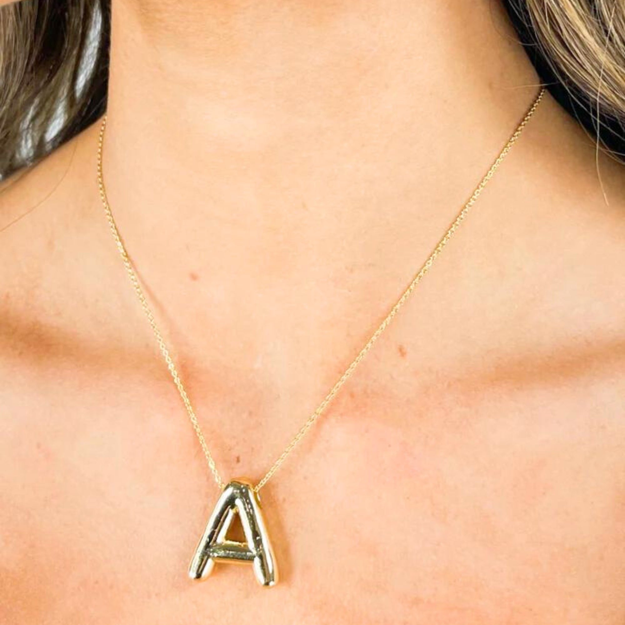 Signature Style Sleek Gold Necklace: Elevate your jewellery collection with our chunky gold pendant customised with the letter 'A', offering a timeless yet personal accent to your everyday ensemble.