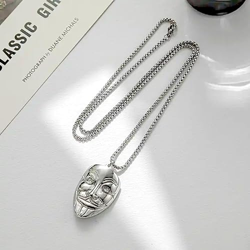Discover the epitome of unique gifts & aesthetic jewellery for men with Salve's Anonymous chain for men with locket, a timeless piece of jewellery that exudes both aesthetic and utility. This necklace for men aesthetic is designed for men and boys, making it an ideal men necklace chain. Crafted from durable stainless steel, this men accessories chain promises longevity and resilience. The boy neck chain features a 'V for Vendetta' pendant, a symbol of rebellion and freedom, perfect for those who appreciate unique gifts for men. Its silver hue adds a dash of elegance, making it a versatile stainless steel necklace for men for any outfit. This silver men chain can be your go-to accessory for any occasion, be it casual or formal. This chain for men represents a deathly hallows locket, a nod to the popular Harry Potter series. Fans of the franchise would appreciate this unique gift, birthday gifts for husband unique making it an ideal Harry Potter gift. This stainless steel jewellery for men makes a perfect thoughtful gift. Be it an anniversary special gift for men, a birthday gift for husband surprise, or even a marriage anniversary gift for husband, this chain for men is sure to impress. It can also serve as an aesthetic jewellery for men, a bentex chain for men. For those looking for unique gifts for husband or for boys neck chain stylish, this men necklace for fashion is a great choice. This snake chain for men short chain, is versatile and fashionable. Whether you're looking for a rapper chain, a villain chain, a thunder chain for men, or even a naruto chain for boys, this neck chain men can cater to your needs. Unleash your inner rebel with the Salve Mens Necklace Chain —a unique blend of sophistication and defiance. Crafted to perfection, the mens chain stainless steel pendant's intricate detailing captures the enigmatic essence of the iconic Anonymous mask, transforming it into an avant-garde fashion statement.