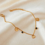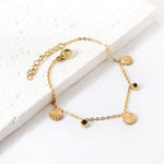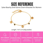 • Beachy Golden Bracelet: Crafted with a delicate gold-toned chain, it features dainty shell charms that evoke a breezy, coastal vibe, perfectly complemented by black stones that add a stunning contrast.