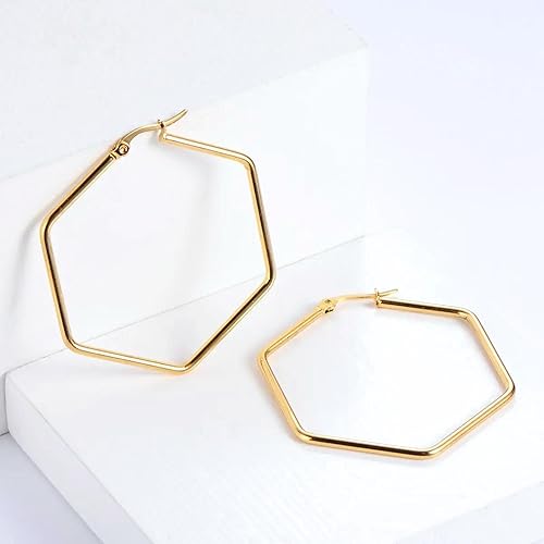 • Geometric Design Women Earrings: Our hoop earrings for women feature a unique hexagon shape, offering a trendy, retro vibe that makes them a perfect statement piece for any fashion-forward wardrobe.