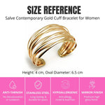 • Chunky Wristlet for Women: The Salve Hand Bracelet for Girls is designed with layered wave-like bands in a luminous gold finish, creating the illusion of multiple bangles in one sculptural cuff.
