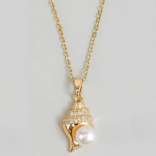 • Pearl Necklace for Women: Inspired by a natural conch shell, this aesthetic necklace pairs a sculpted swirl with a luminous pearl for soft beachy elegance, adding timeless charm to everyday outfits