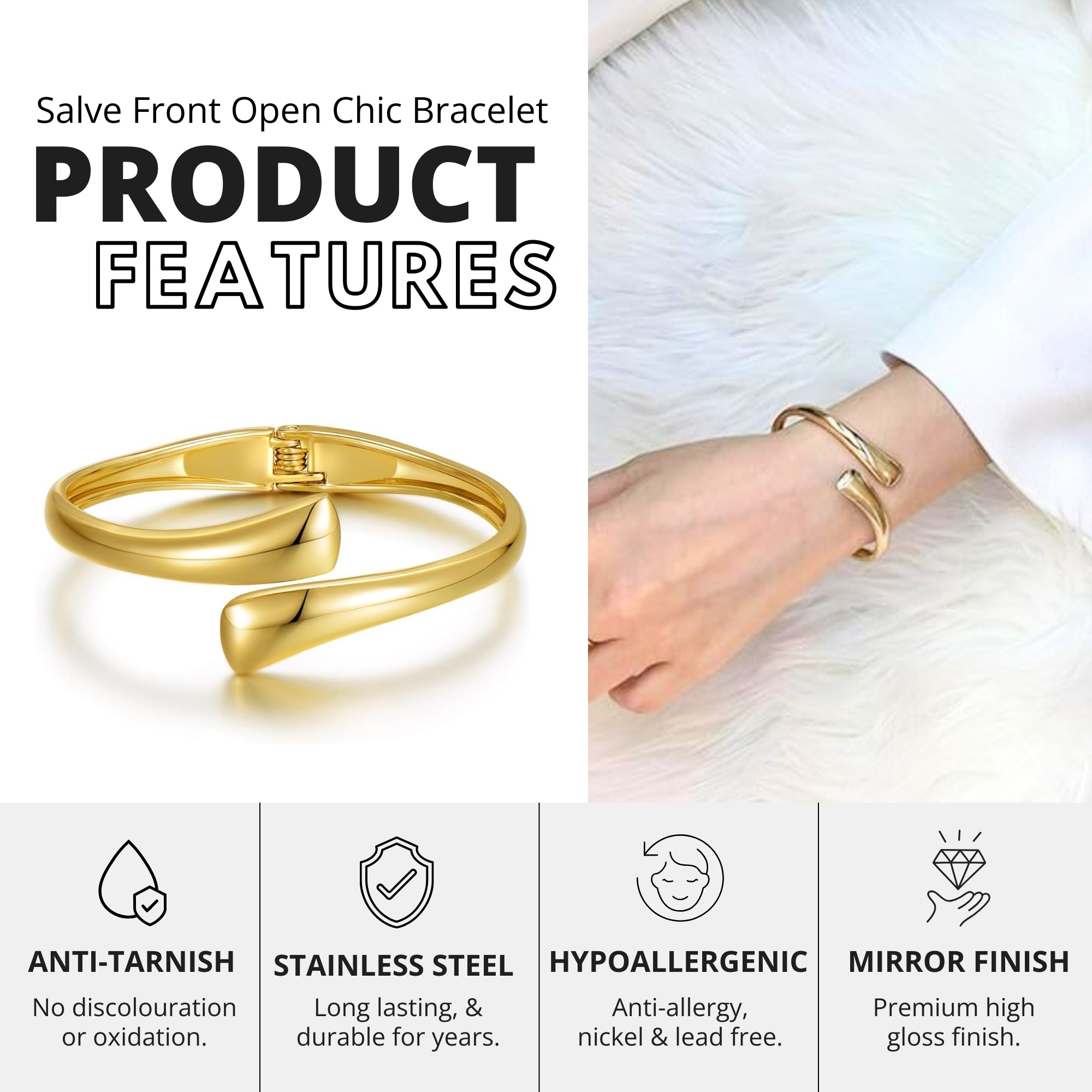 Adjustable: Crafted from stainless steel with a gold-finish, this stylish dainty classy bracelet a features a front-open style, allowing for easy wearing & adjustment for any wrist size.