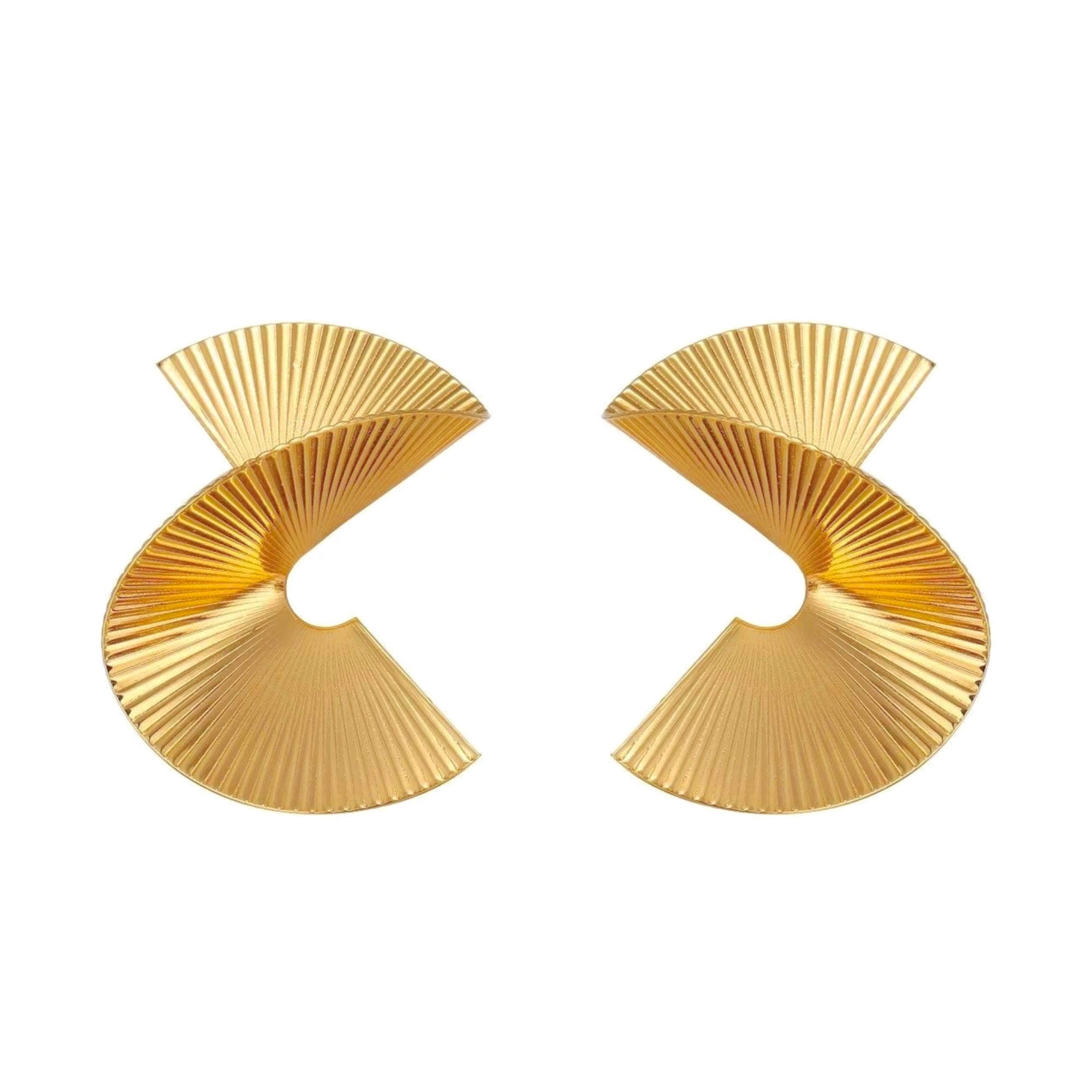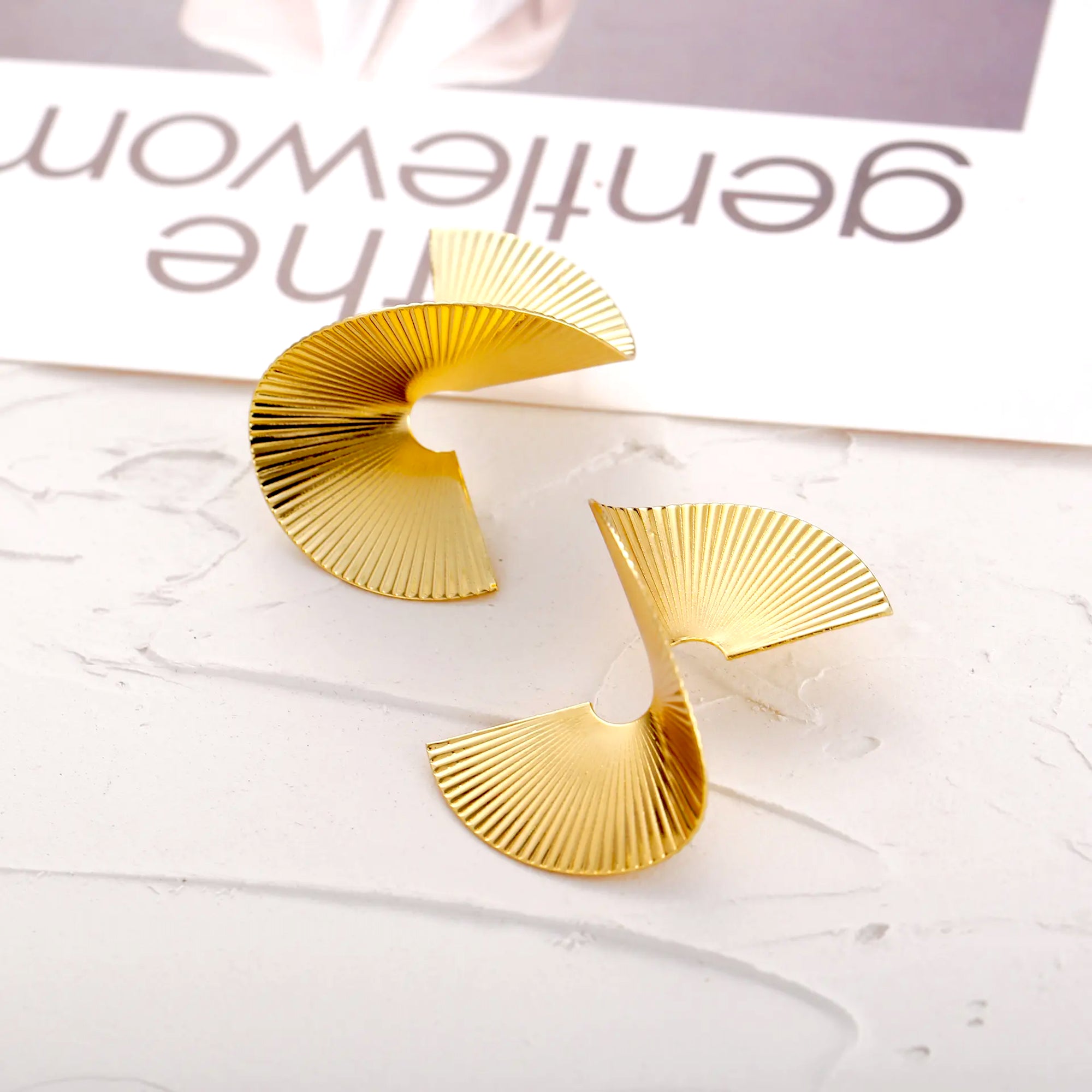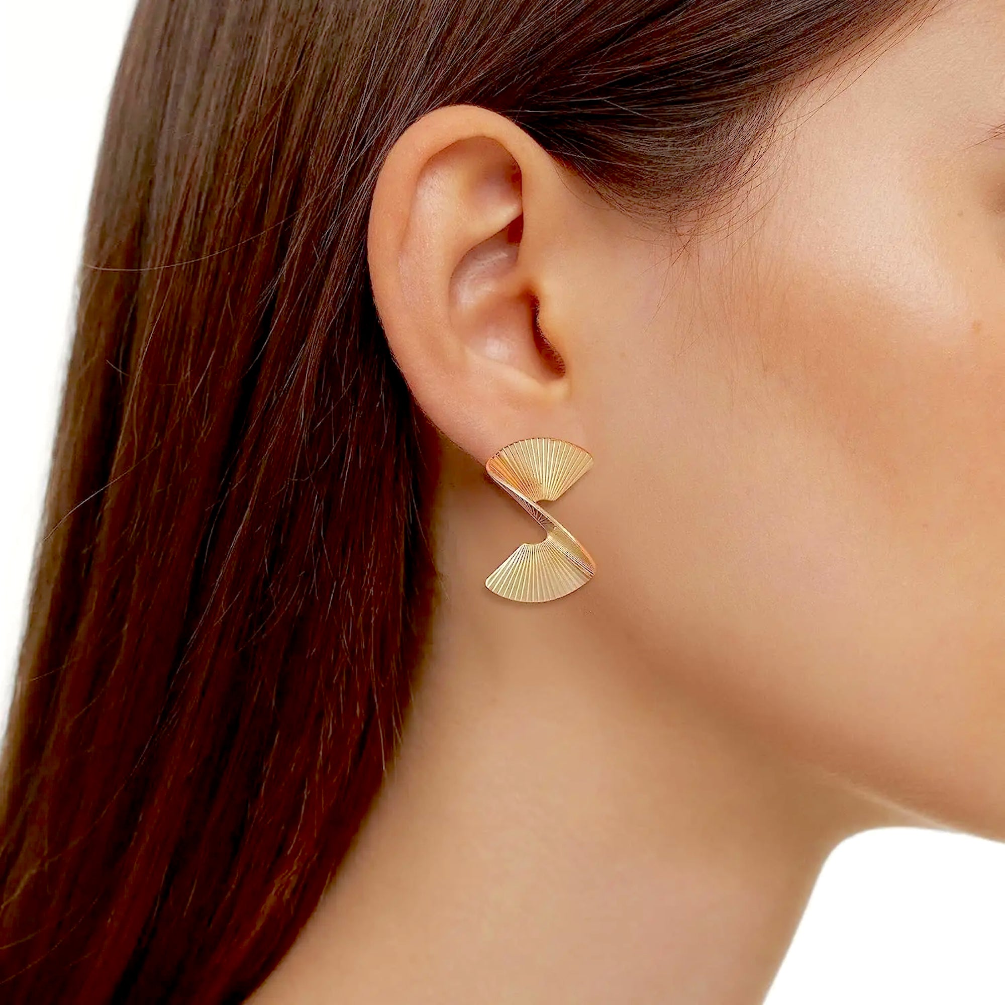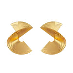 Salve Contemporary Twisted Fan Gold Stud Earrings for Women