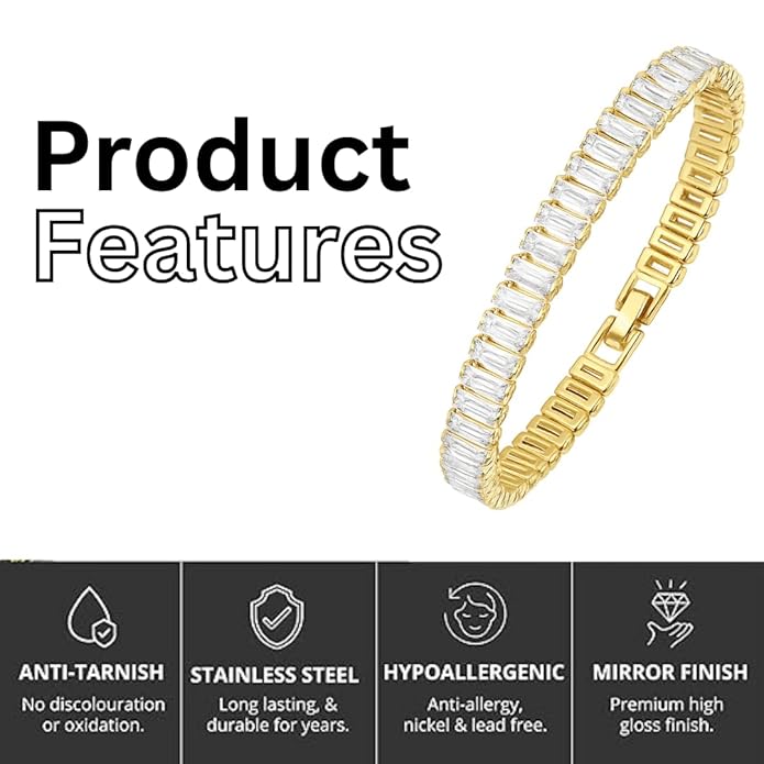 Chic Bracelet for Women: The Salve Gold Crystal Bracelet features delicately set silver crystals on a gold-toned base for a minimal yet glam look.