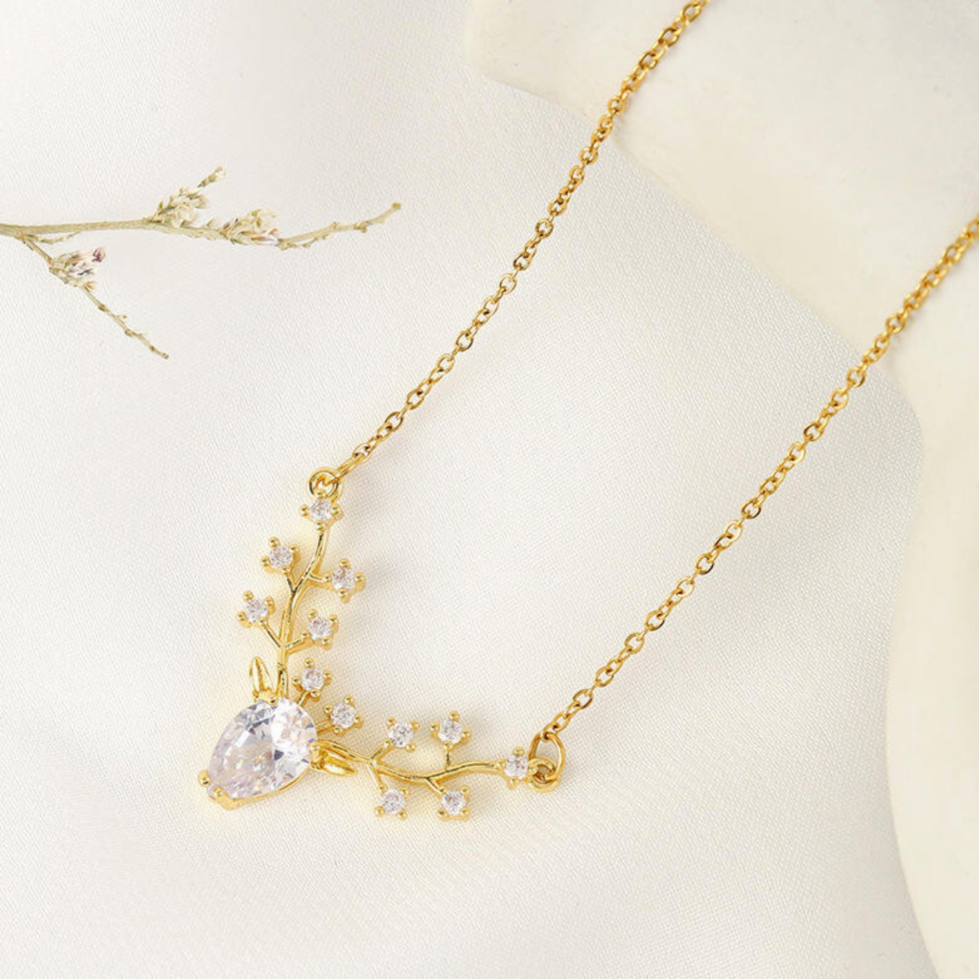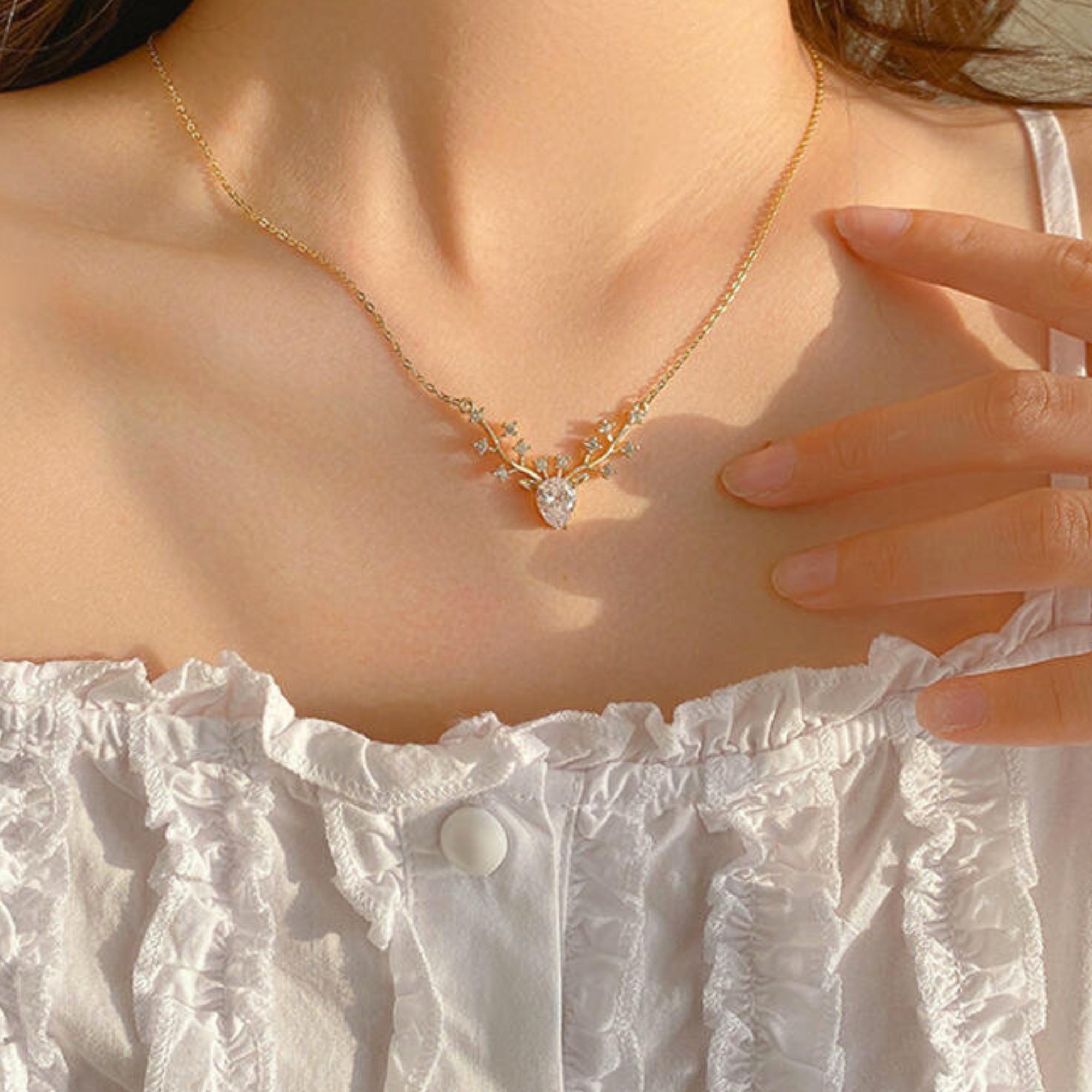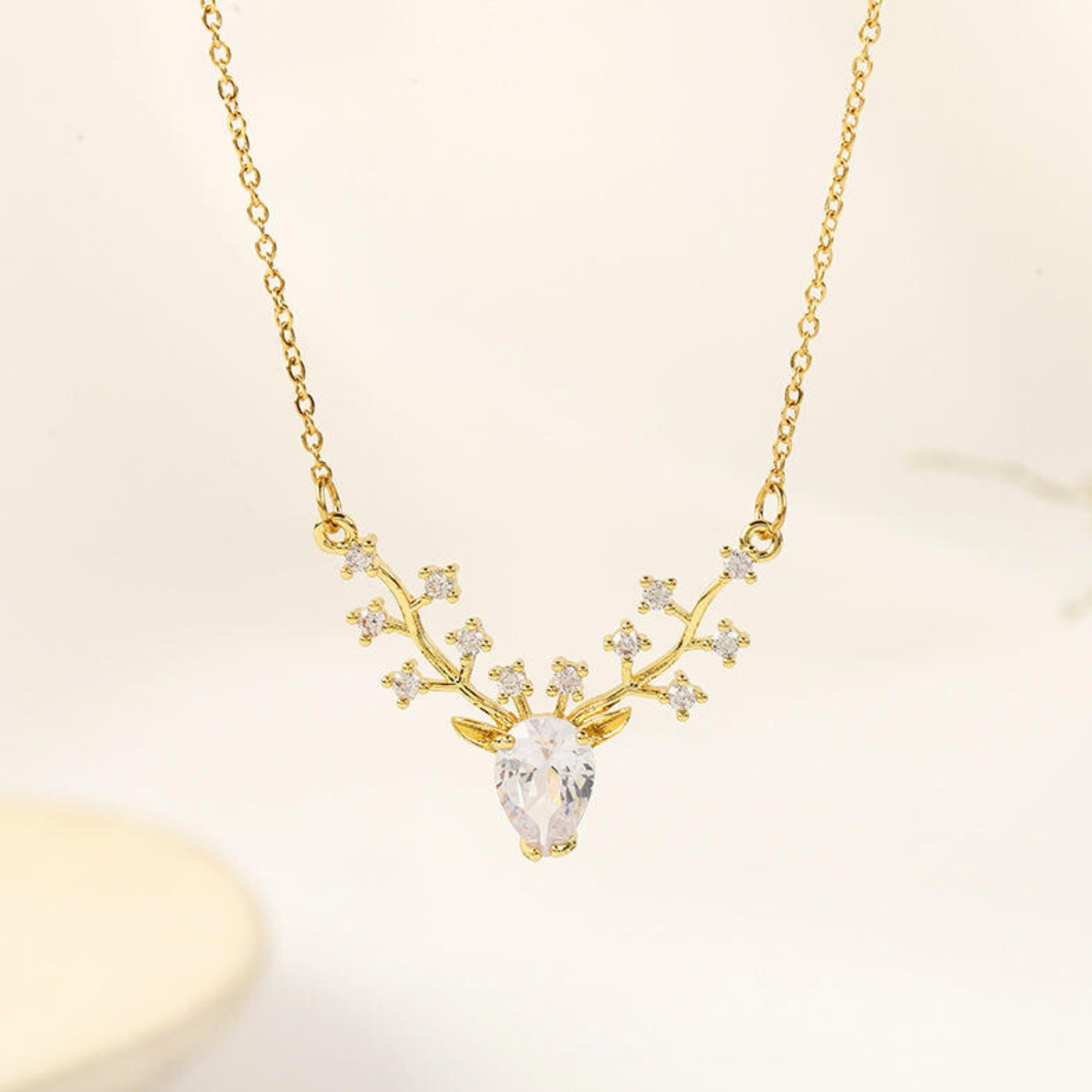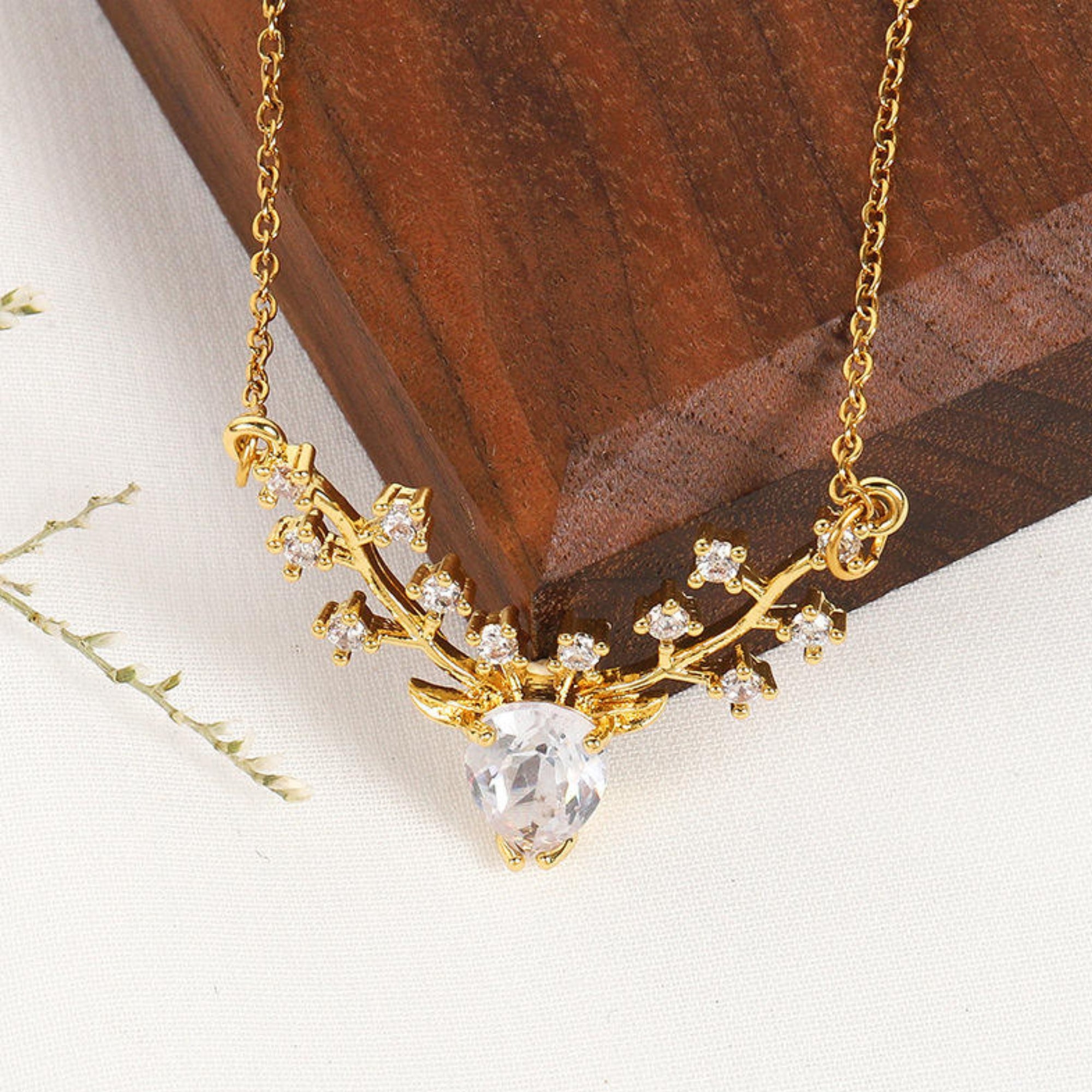 • Delicate Necklace for Women: A teardrop CZ stone forms the heart of the piece—framing the face of the deer, delicately followed by reindeer-inspired antlers that branch into sparkling accents.