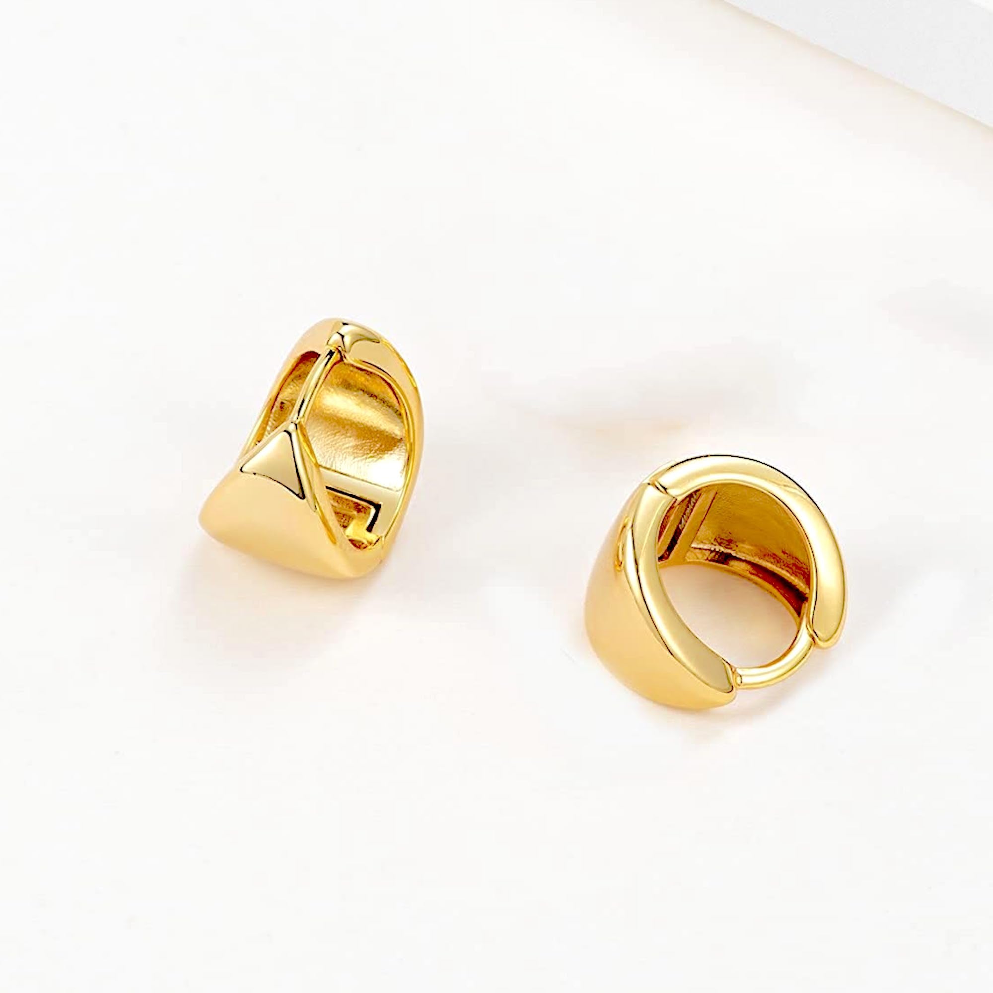 Minimal Earrings for Women: Crafted in a small yet chunky huggie hoop shape, these golden hoops feature a unique thick dome shape. Hypoallergenic, light-weight, comfortable; ideal for everyday wear.