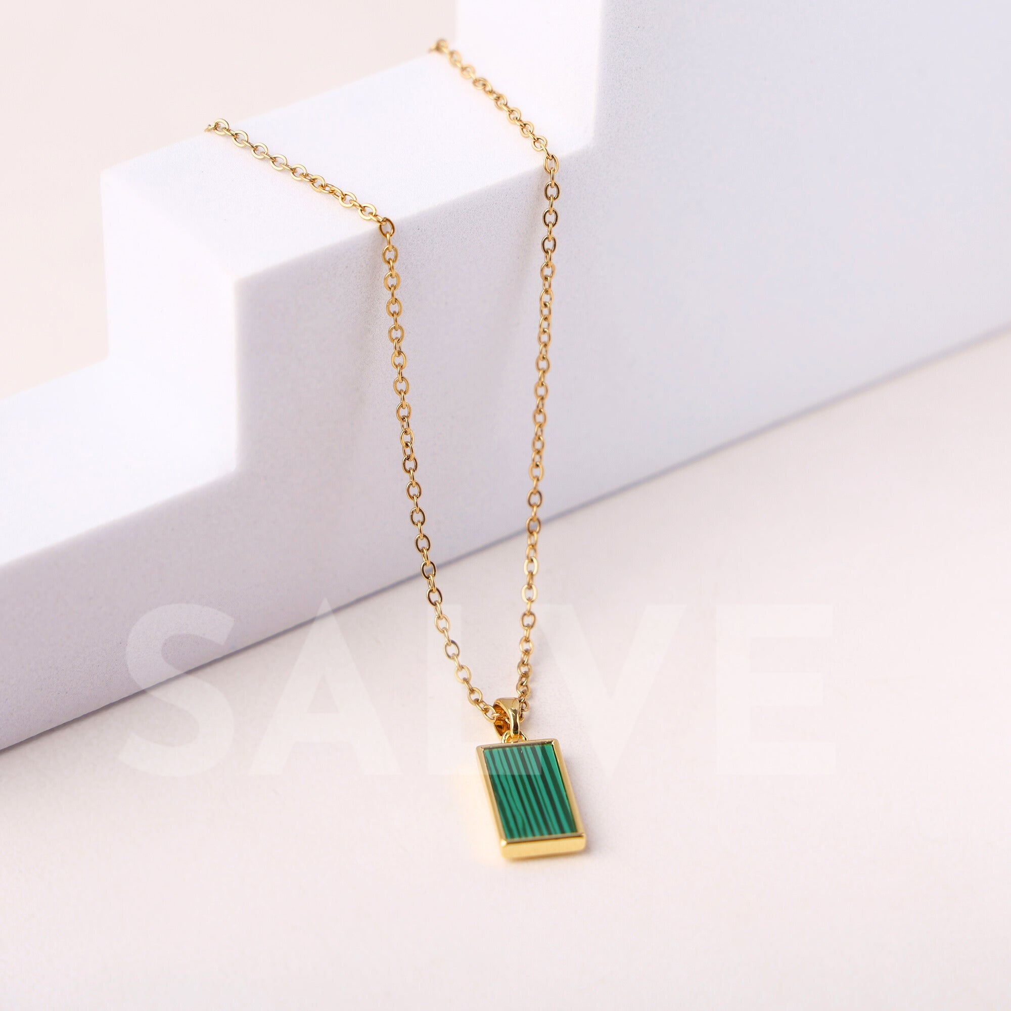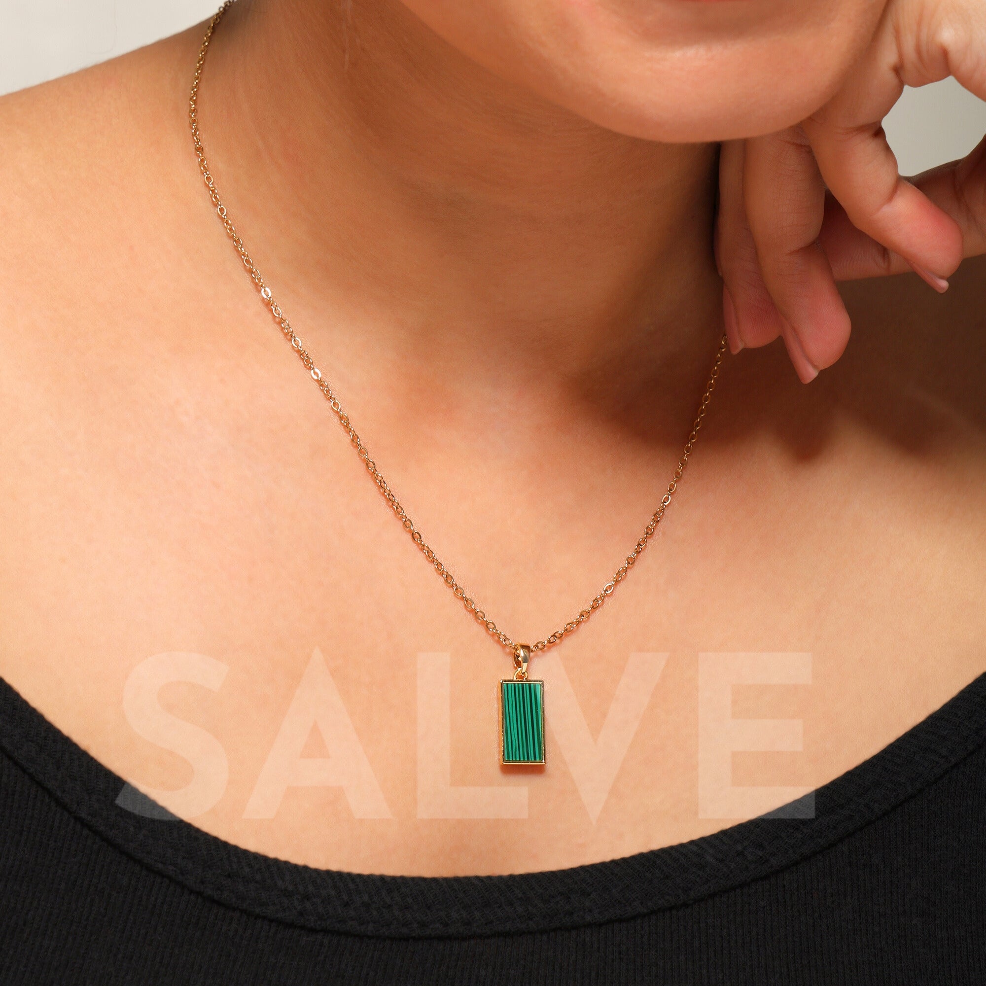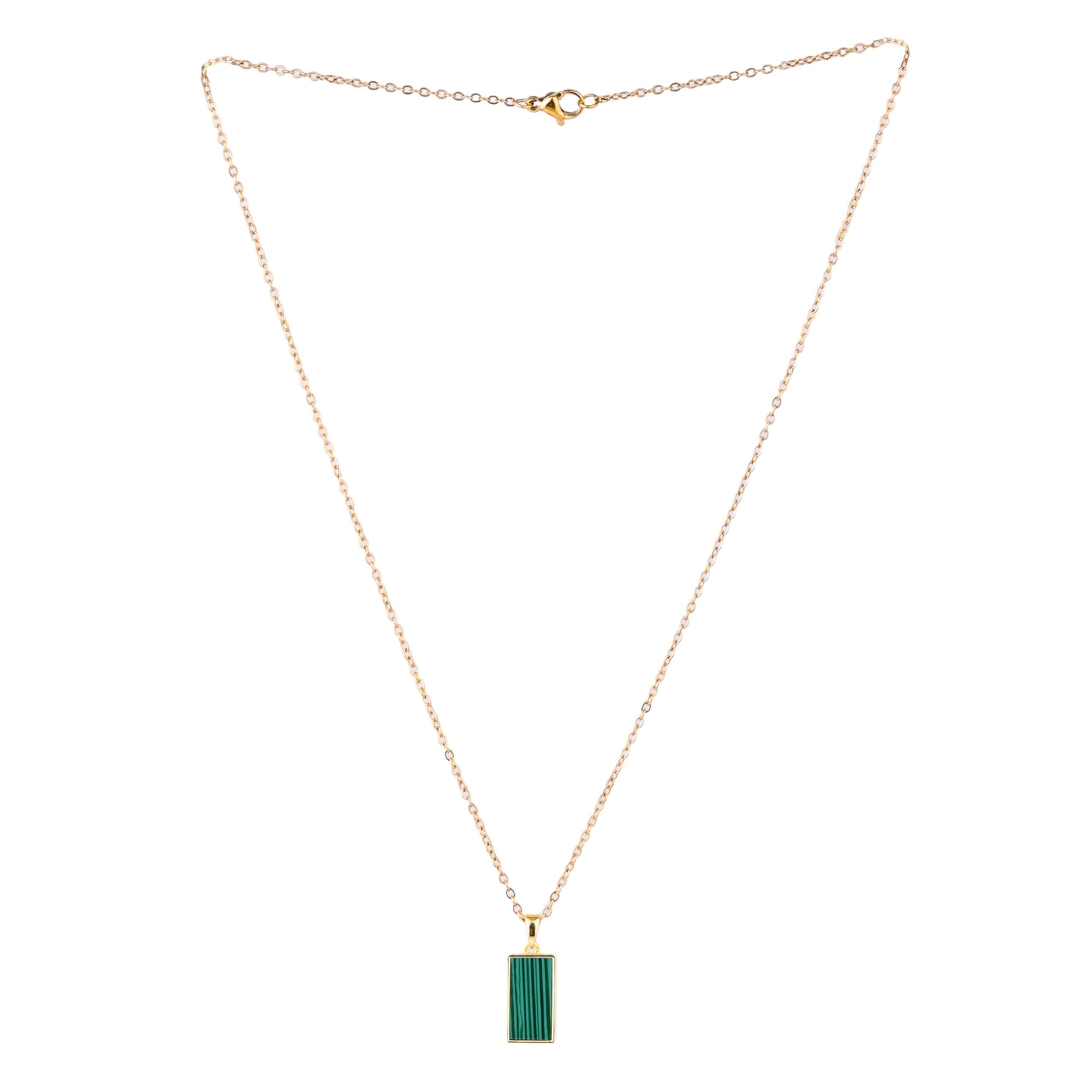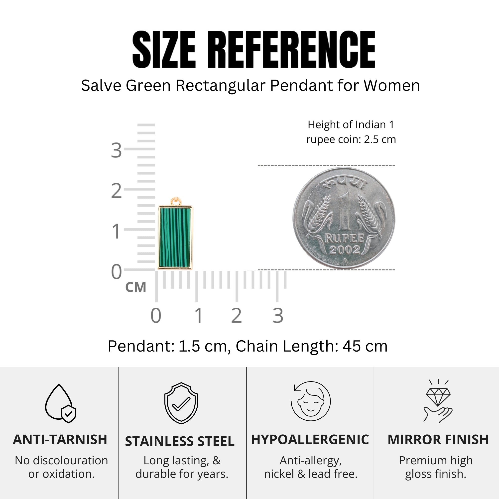 Green Locket for Women: The Salve Chic Green Pendant Necklace boasts a modern, minimal design with a green stone encased in a gold-toned frame hanging from a matching chain.