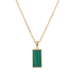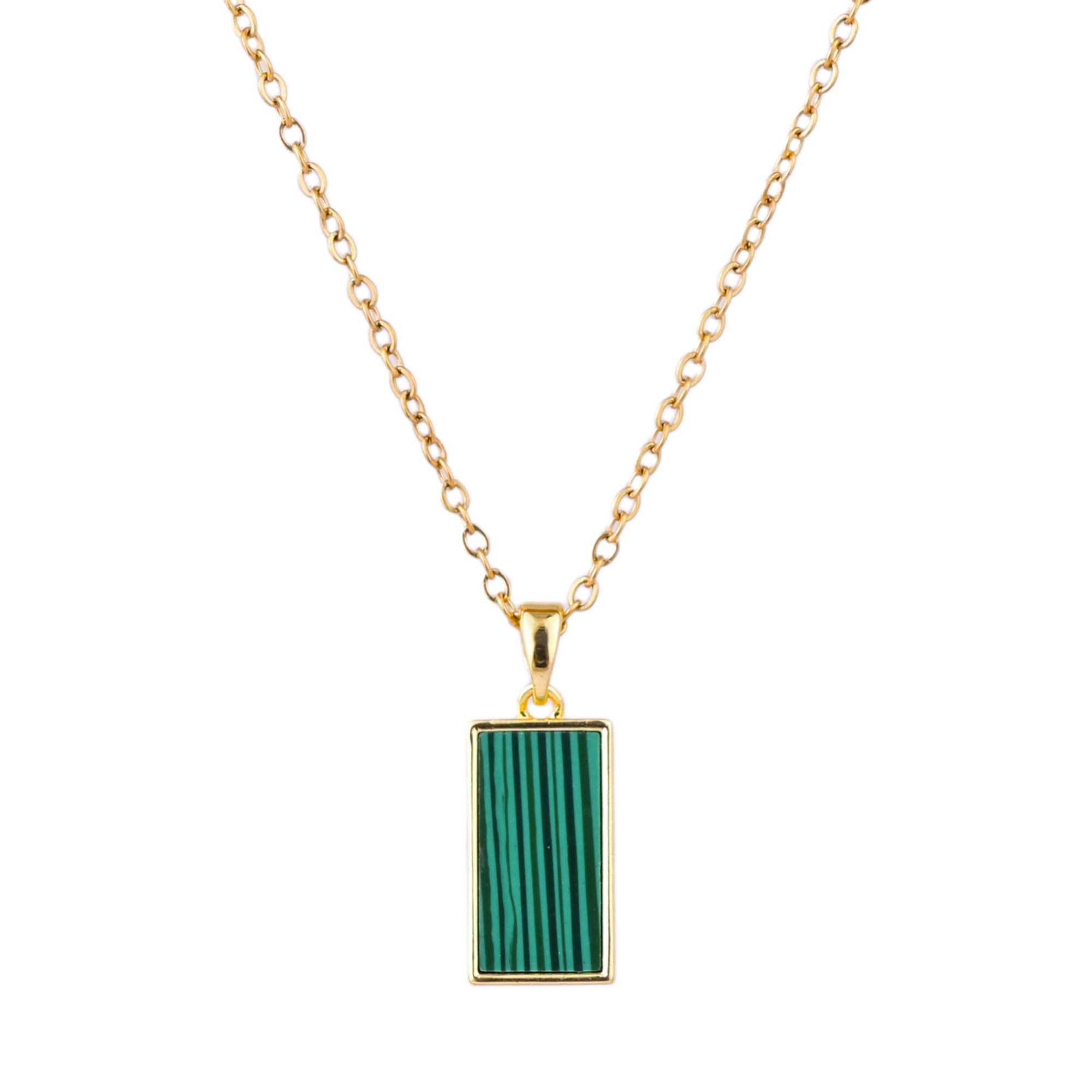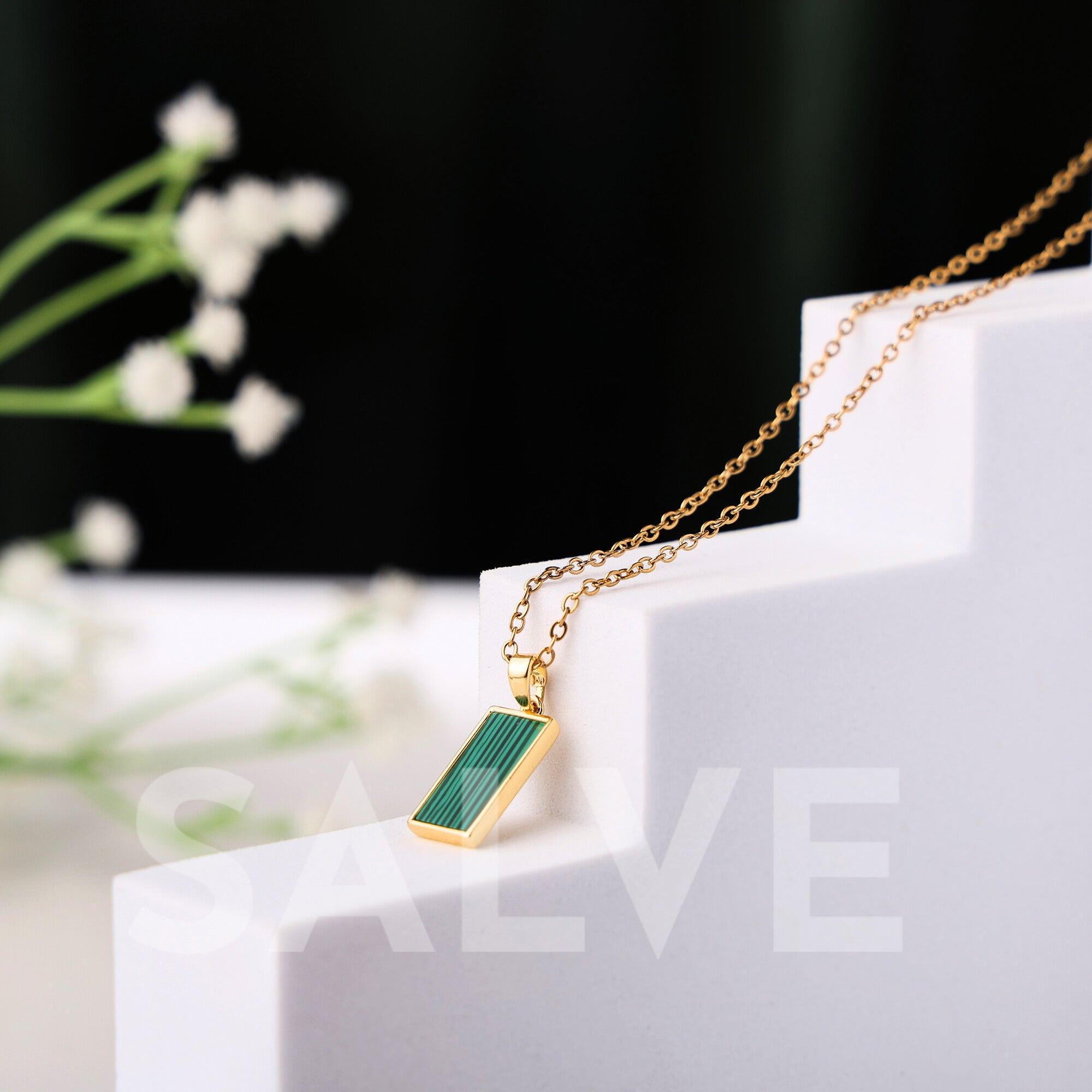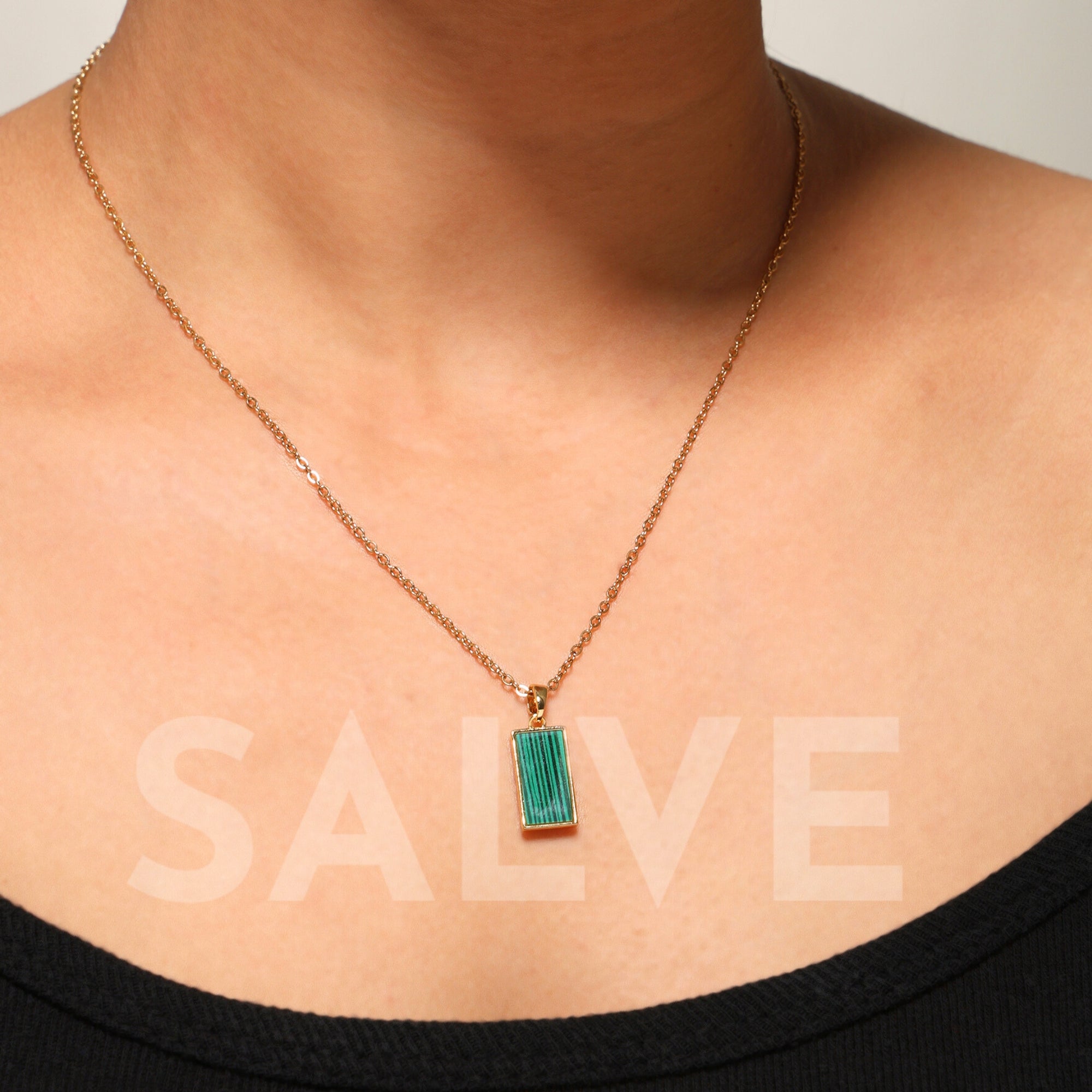 Green Locket for Women: The Salve Chic Green Pendant Necklace boasts a modern, minimal design with a green stone encased in a gold-toned frame hanging from a matching chain.
