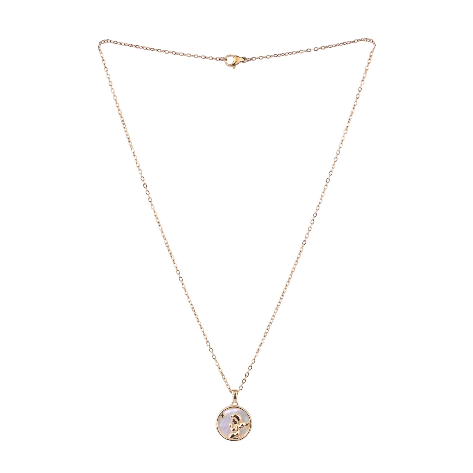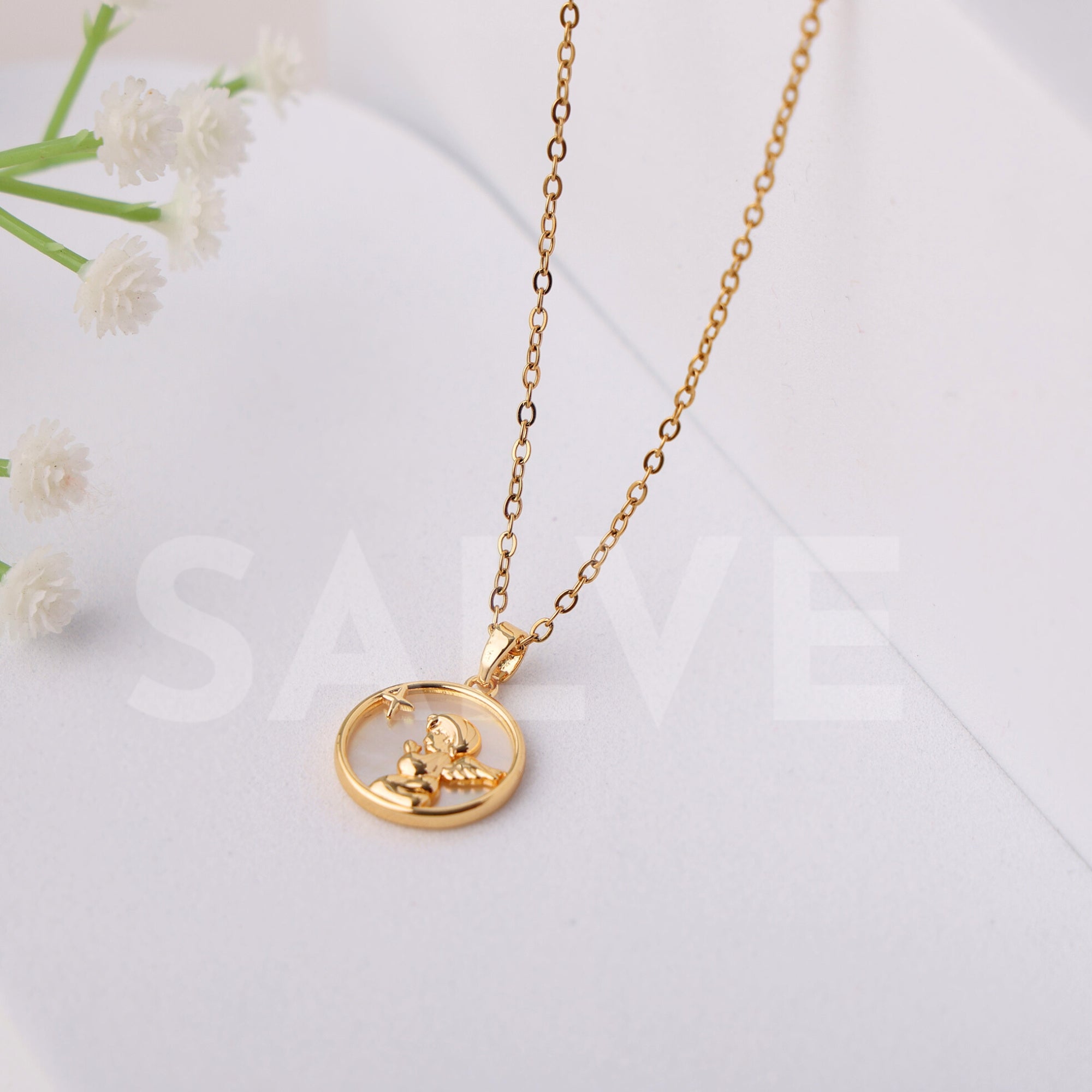 One of a Kind Girls Pendant: The Salve Angel Pendant for Women features a beautifully crafted gold pendant adorned with a white enamel overlay, showcasing a serene, praying angel at its centre.