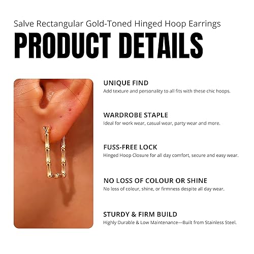 • Unique Hoops Earrings for Women Stylish: The Salve Jewellery Chic Hoops feature a sleek & sophisticated design in golden metal, are delicately sized, striking a balance between subtle & statement.