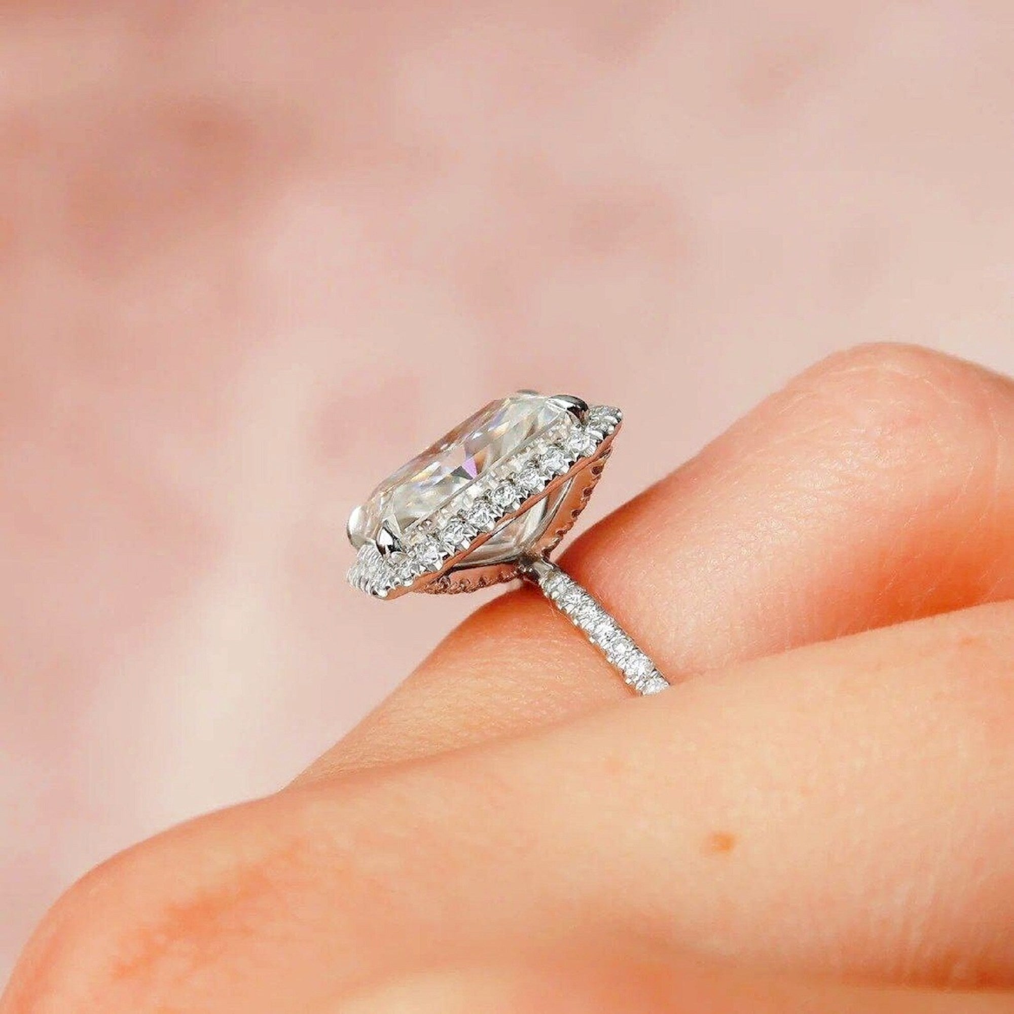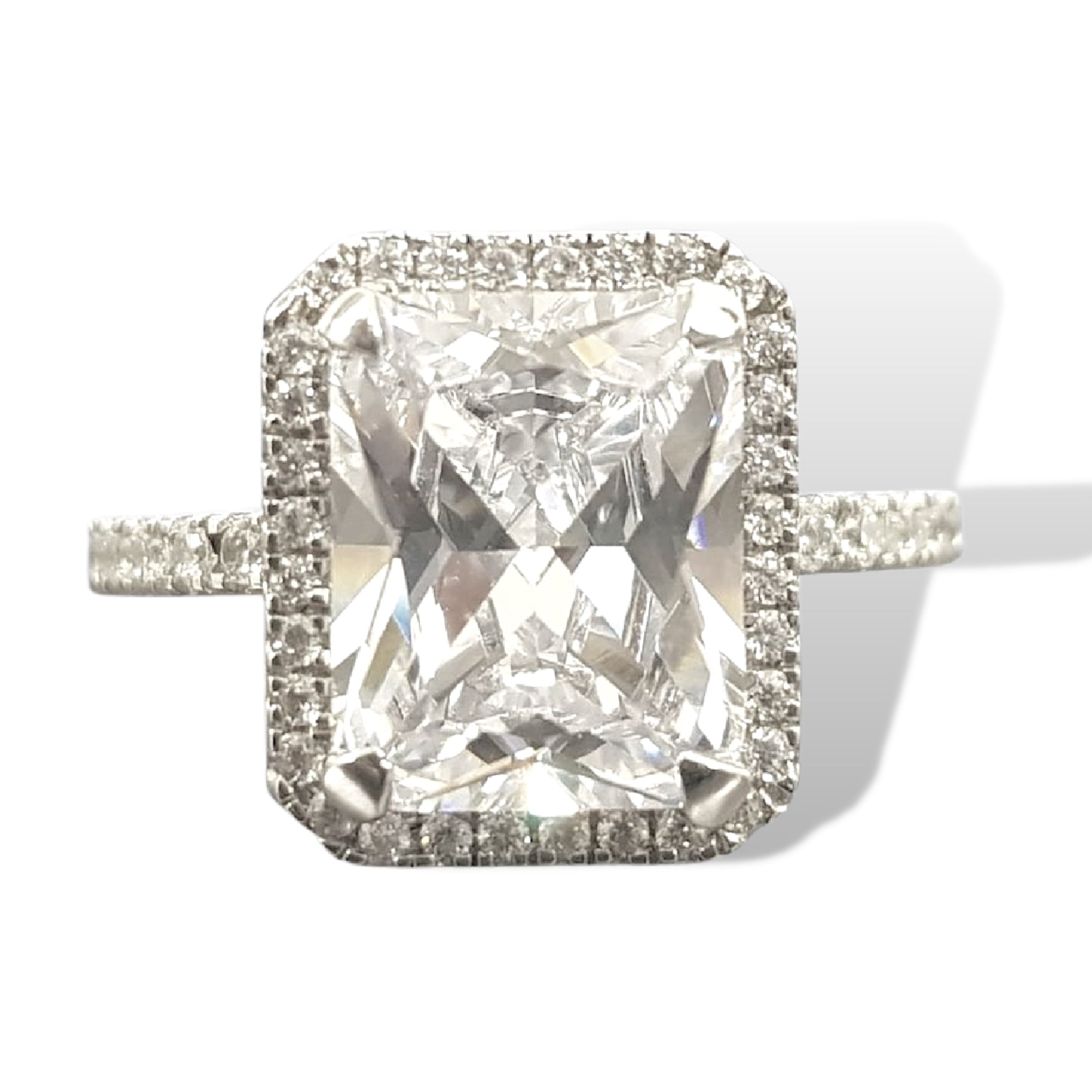 Salve ‘Princess’ Silver Solitaire Halo Ring | Emerald Cut, Anti-Tarnis