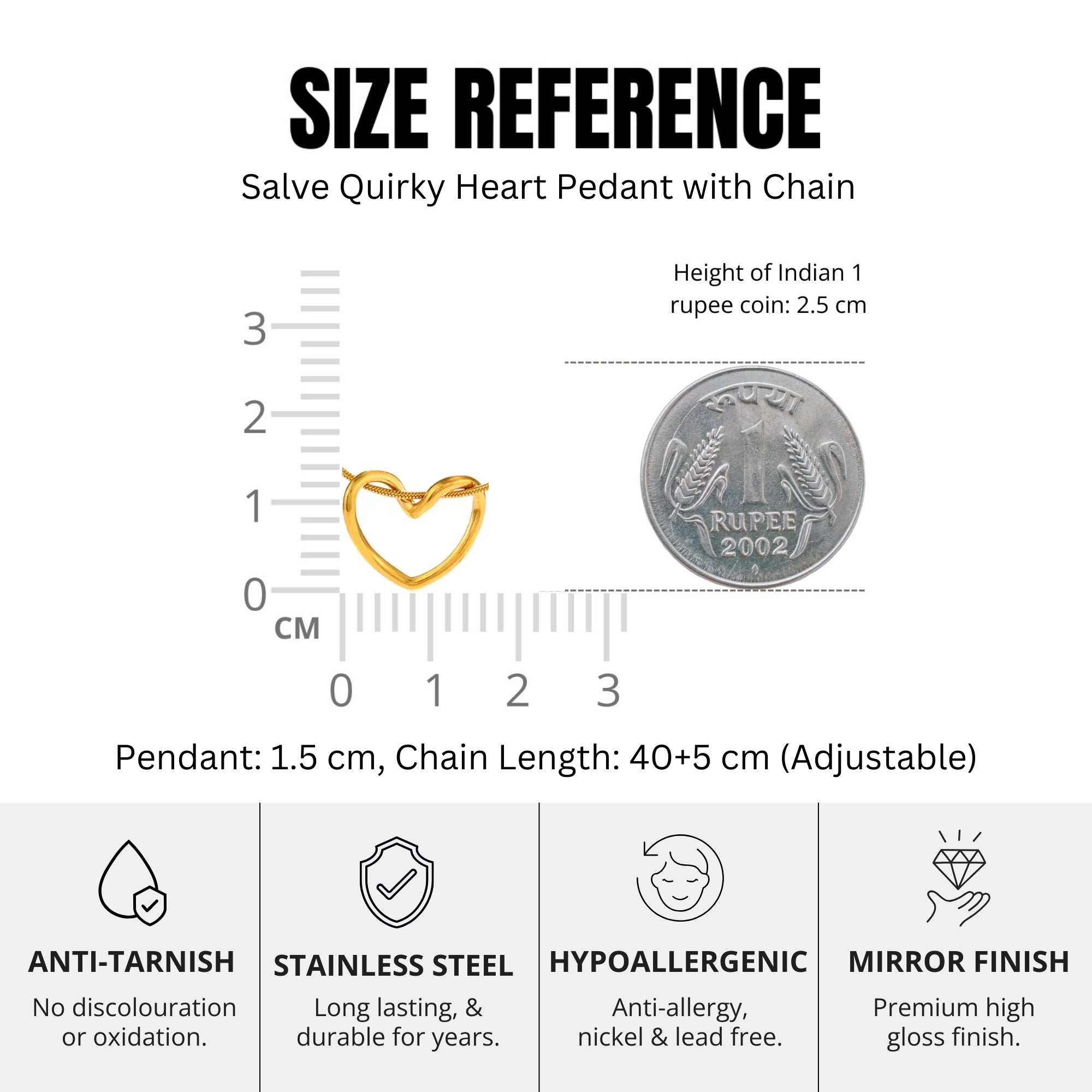 Specifications: Size: Pendant: 1.5 cm, Chain: 40+5 cm (Adjustable), Material: Stainless Steel Anti Tarnish Necklace, Closure: Lobster Claw Clasp | Highly Durable & Low Maintenance Neck Chain for Women