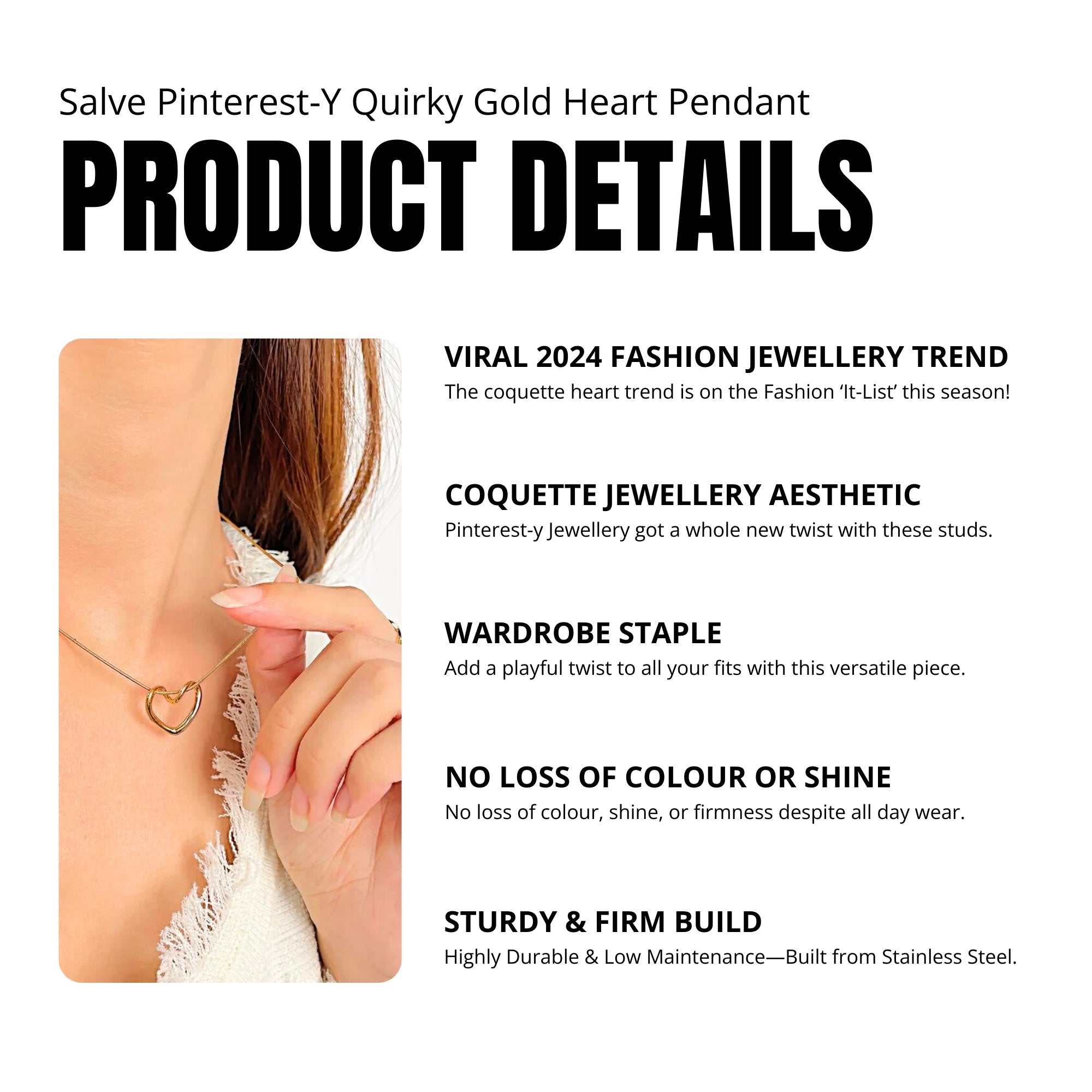 Chic Heart Pendant: The Salve Heart Pendant Necklace features a whimsical heart pendant on a sleek, gold-toned adjustable chain, a stylish statement that's both timeless and contemporary.