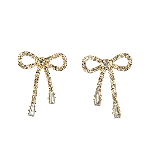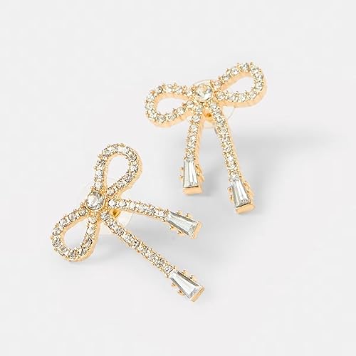 • Chic Fashion Earrings for Women Stylish: Delicately shaped like knotted ribbon bows, our trendy earrings for women stylish encrusted with silver-toned zircon stones that catch the light beautifully.