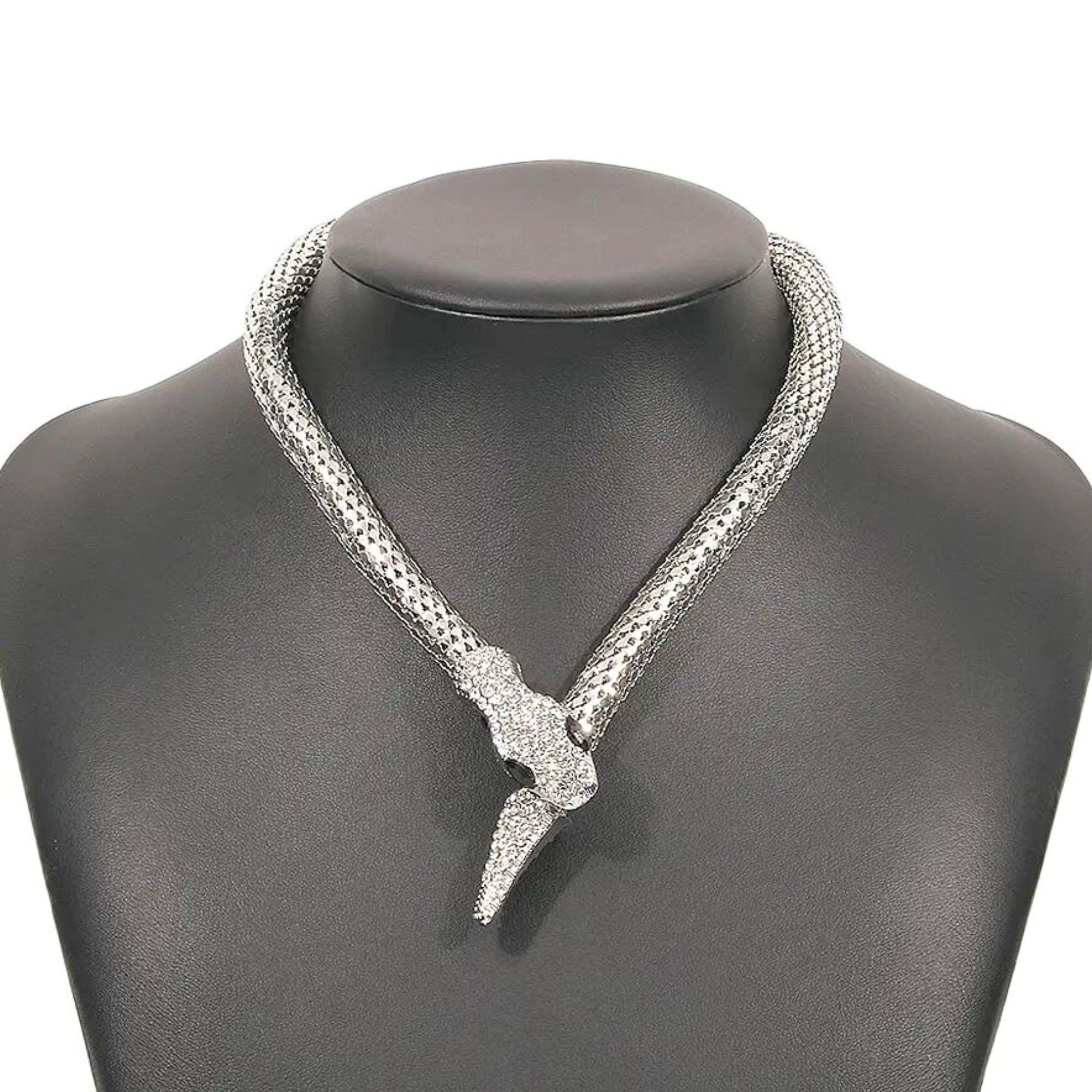 Snake Necklace for Women: The Salve Serpent Choker features a striking design that commands attention, featuring a snake design choker adorned with zirconia stones, complete with a magnetic closure.