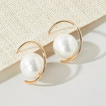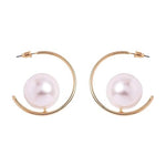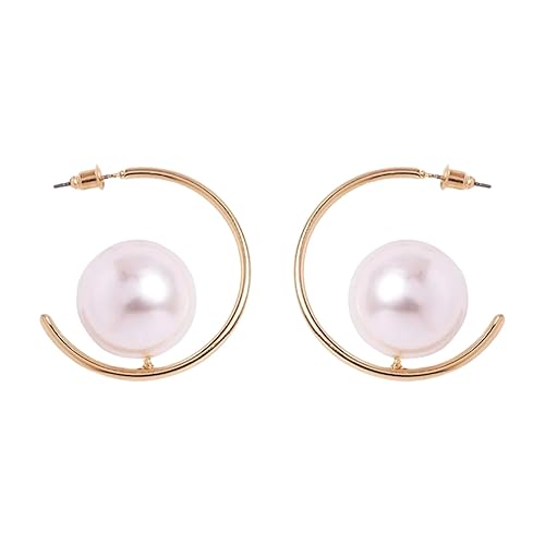 • Chic Golden Earrings for Women: Our statement earrings feature a contemporary open-hoop design crafted in a gold-toned finish, with a striking oversized pearl delicately suspended at the curve’s end.