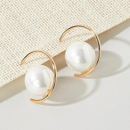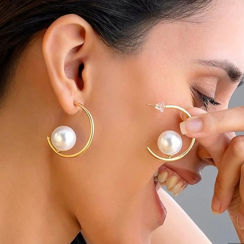 • Timeless Elegance Gold Hoops Earrings for Women: Our pearl earrings feature faux pearls in a sleek half-hoop design, blending minimalism & charm—perfect for brunches, meetings, or resort wear.