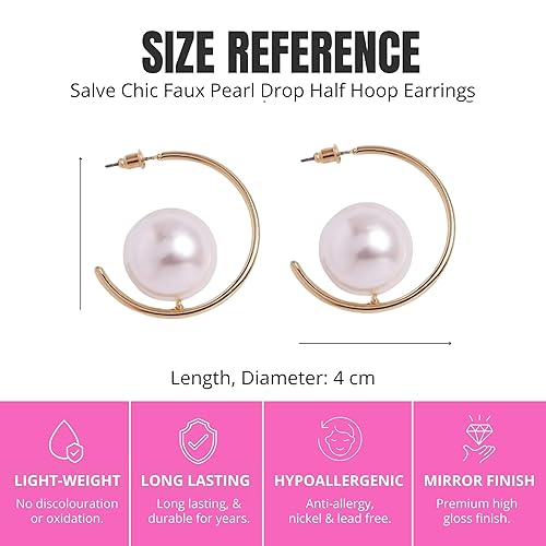 • Specifications: Size: 4 cm, Material: Faux Pearls, Metal Alloy, Closure: Push Back | Highly Durable, Long Lasting & Low Maintenance Statement Jewellery for Women | Light Weight Earrings for Women