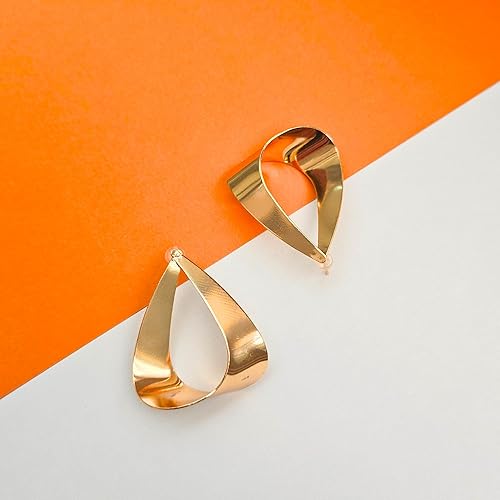 • Bold Earrings for Women Fashion: Our contemporary fancy earrings for girls feature a chic teardrop design crafted with a golden finish. The twisted shape creates a unique, aesthetic sculptural form.