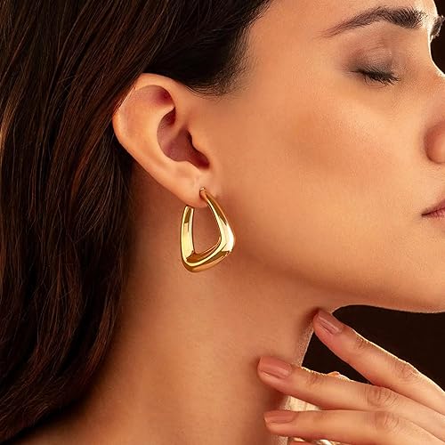 • Statement Earrings for Women: Crafted in a high shine, gold-toned finish, the Salve Jewellery Earrings feature a sleek, triangular silhouette that reimagines the classic hoop with a modern twist.