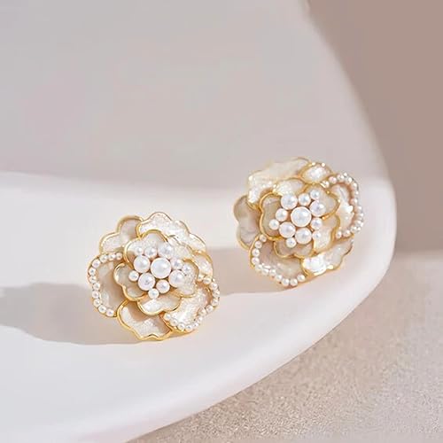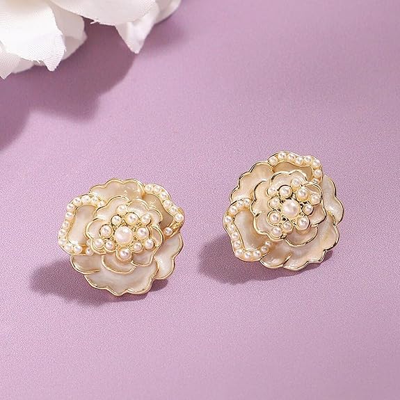 • Coquette Studs for Women: The white petals are embellished with miniature pearl beads, intricately placed to mimic dew-kissed textures, adding a soft, romantic shimmer to these pinterest earrings.